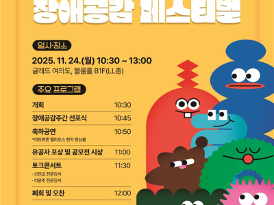[한국장애인개발원] 장애공감페스티벌-토크콘서트주제 : 장애공감페스티벌-장애인식개선 토크콘서트일정 : 2025년 11월 2..